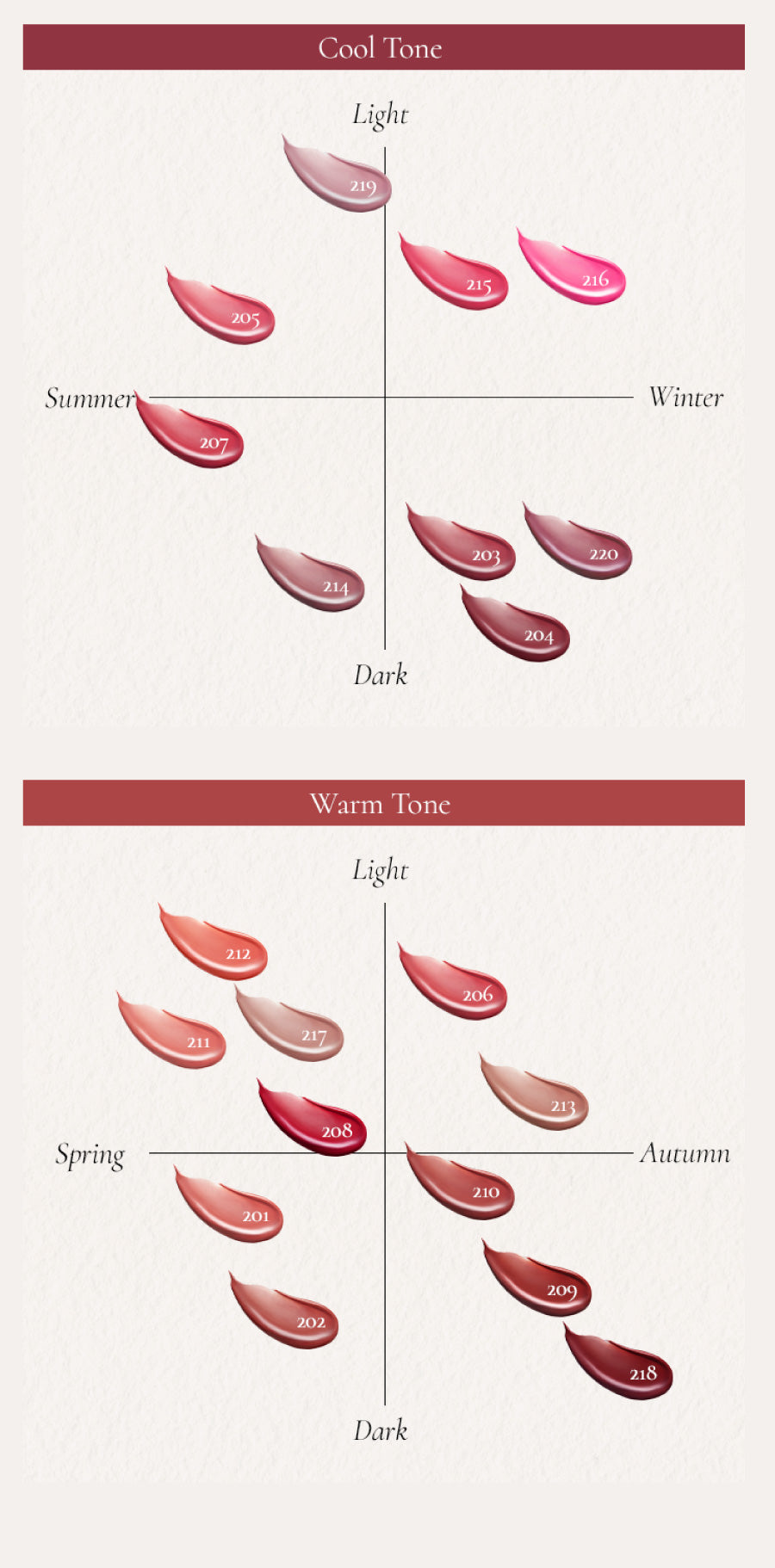 Enjoy a non-sticky, glowing finish with a pleasantly light texture. This tint offers a luminous “light and glassy water glow,” creating a fresh and radiant look on your lips.
