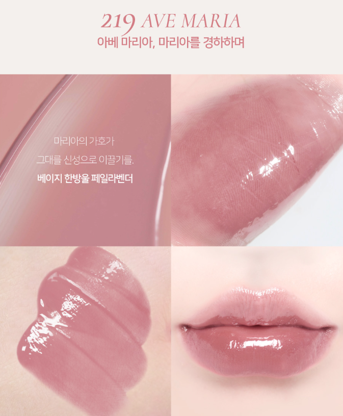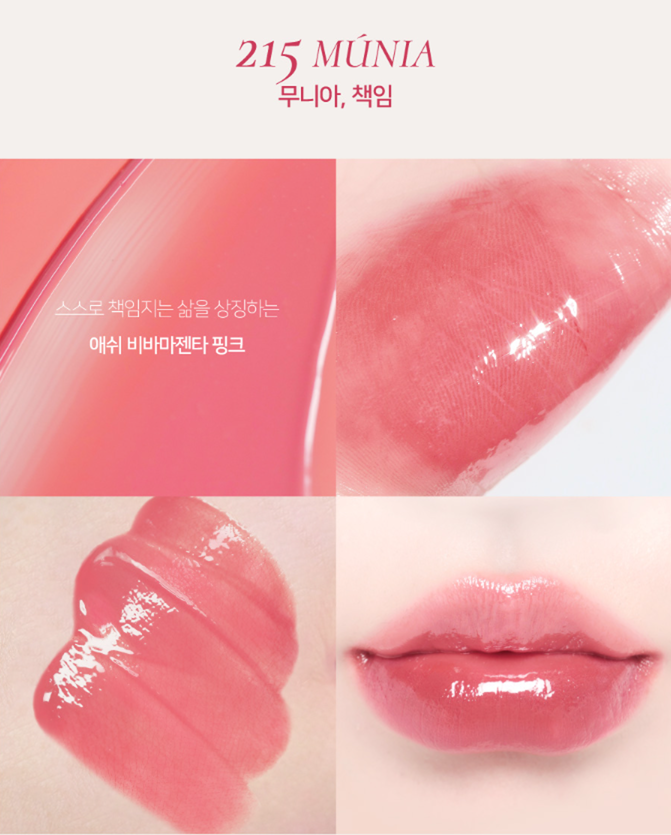 Enjoy a non-sticky, glowing finish with a pleasantly light texture. This tint offers a luminous “light and glassy water glow,” creating a fresh and radiant look on your lips.