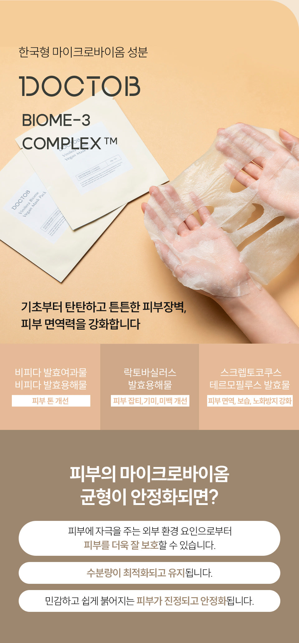 - Biome 3 Complex: A Korean-style microbiome complex that protects and improves skin flora, strengthening the skin barrier.