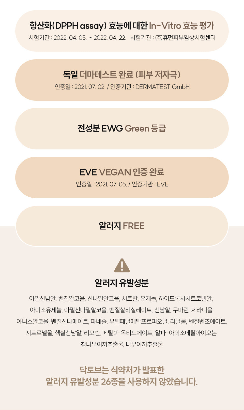 - Free from 26 allergens announced by the Ministry of Food and Drug Safety.