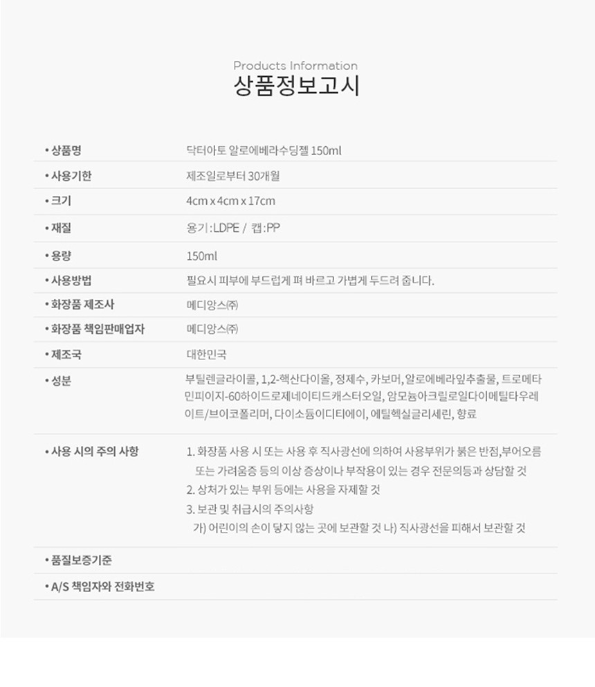 Dr.ato Low-Irritation Soothing Aloe Vera Soothing Gel 150ml