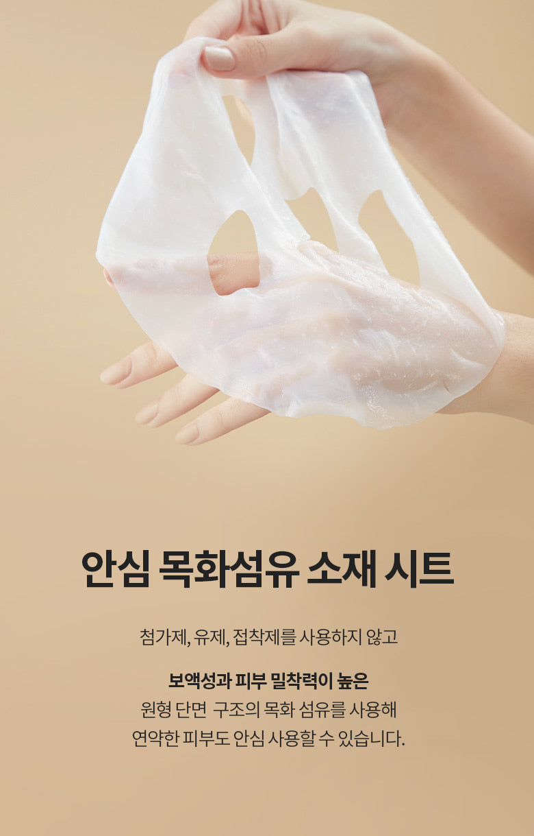 In addition, the use of sheets made of fiber fabric with a circular cross-section structure provides high liquid retention and adhesion, distributing the essence evenly to the skin, and no additives, emulsions, or adhesives are used when making the sheets, so they can be used safely even on sensitive skin.