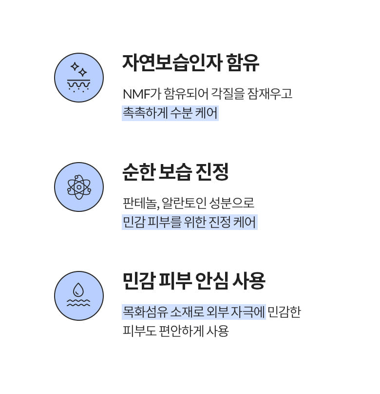 Contains skin-friendly natural moisturizing factors as main ingredients to quickly and comfortably soothe sensitive skin.