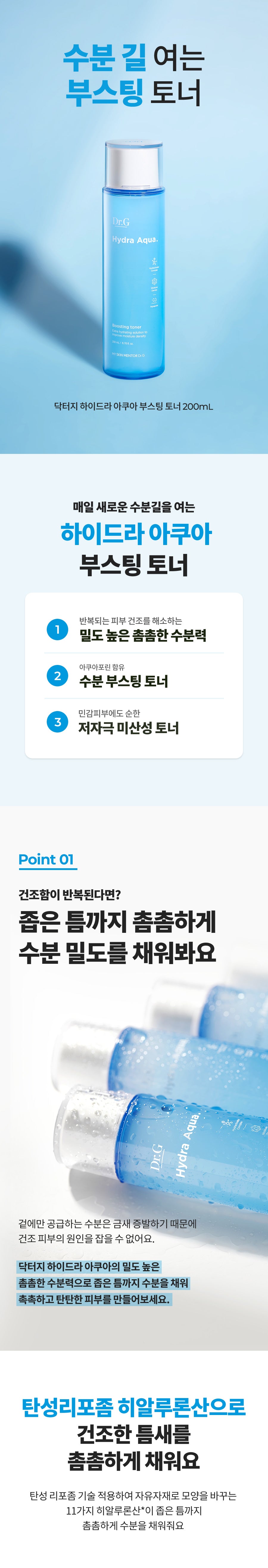 Sensitive Skin Formula Dr.G Hydra Aqua Boosting Toner is meticulously formulated to be safe for sensitive skin, ensuring everyone can enjoy its benefits. It not only prepares your skin by enhancing the effectiveness of subsequent skincare steps but also does so gently with its mild acidic formula that mimics the natural pH of healthy skin. Clinical tests confirm its hypoallergenic properties, making it suitable for sensitive skin without causing irritation.