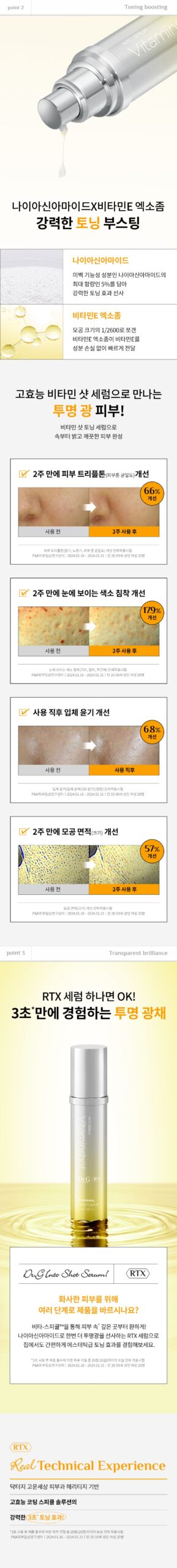Experience instant 3D skin glow and significant improvement in skin tone and pigmentation after just two weeks of use with Dr.G RTX Into Serum Vitaminshot.
