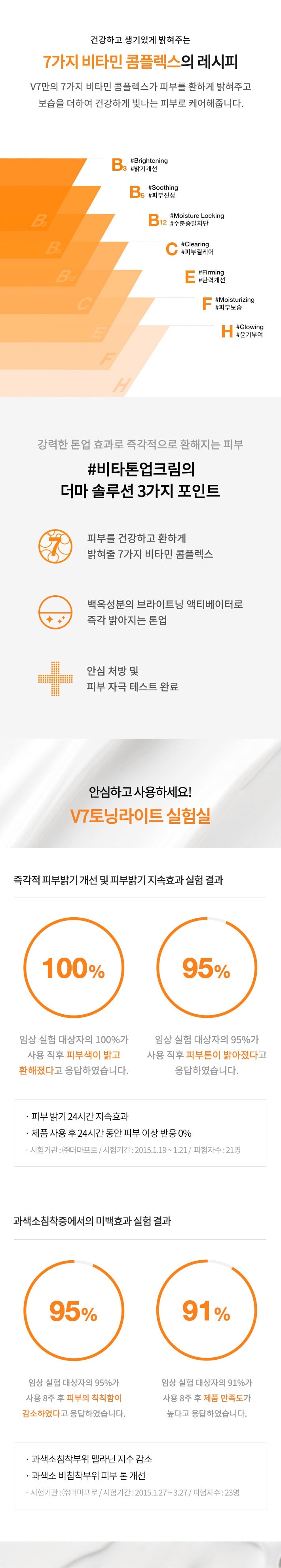 Dermatological Solutions in V7 Tone-Up Cream This product features a blend of skin-health-promoting vitamins and brightening agents for immediate tone-up effects.