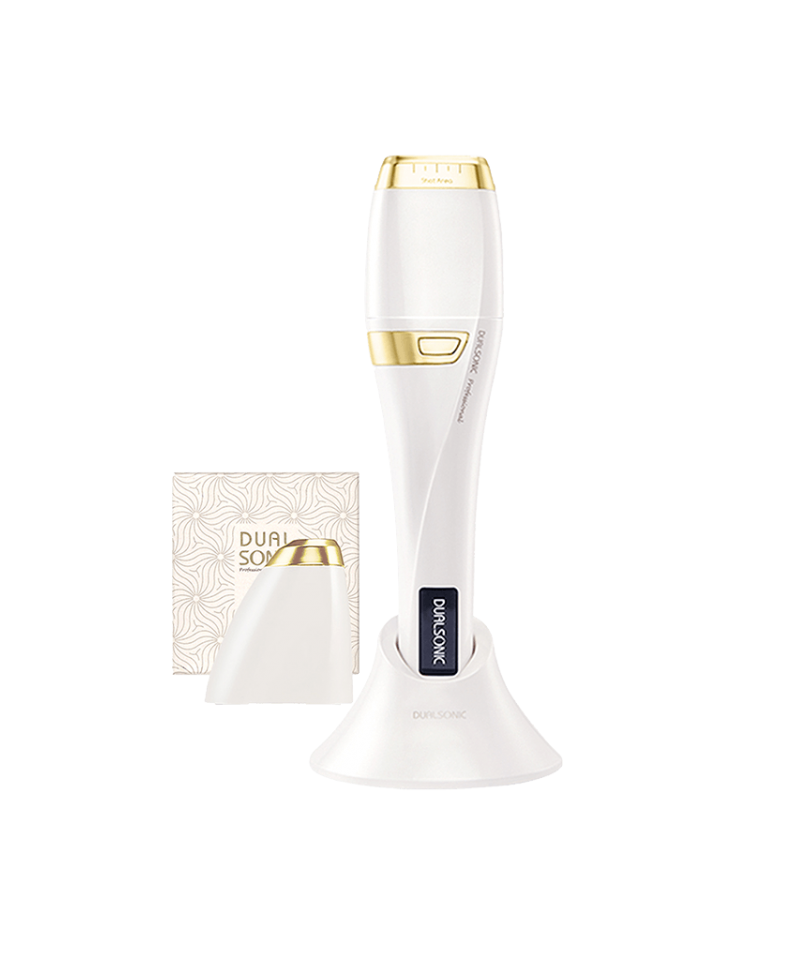 Achieve professional-grade skin elasticity care from the comfort of your home with DUALSONIC Professional Set. Enjoy powerful premium-focused ultrasound home care with just one 15-minute session every two weeks for visible results.