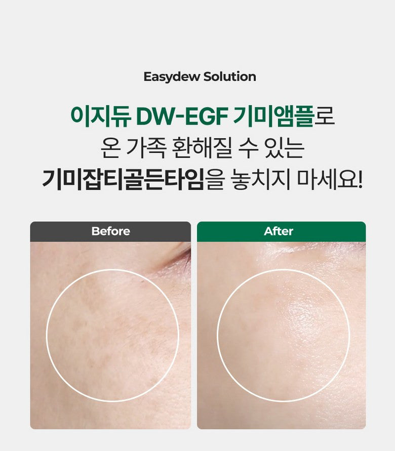 Achieve visibly renewed and youthful skin with Easydew’s EGF Wrinkle Ampoule, formulated by Daewoong Pharmaceutical to target blemishes, freckles, and signs of aging. Leveraging a powerful 99.9% pure EGF (Epidermal Growth Factor) formula, this ampoule is clinically proven to reduce even stubborn, long-standing blemishes and freckles by rejuvenating skin at the cellular level.