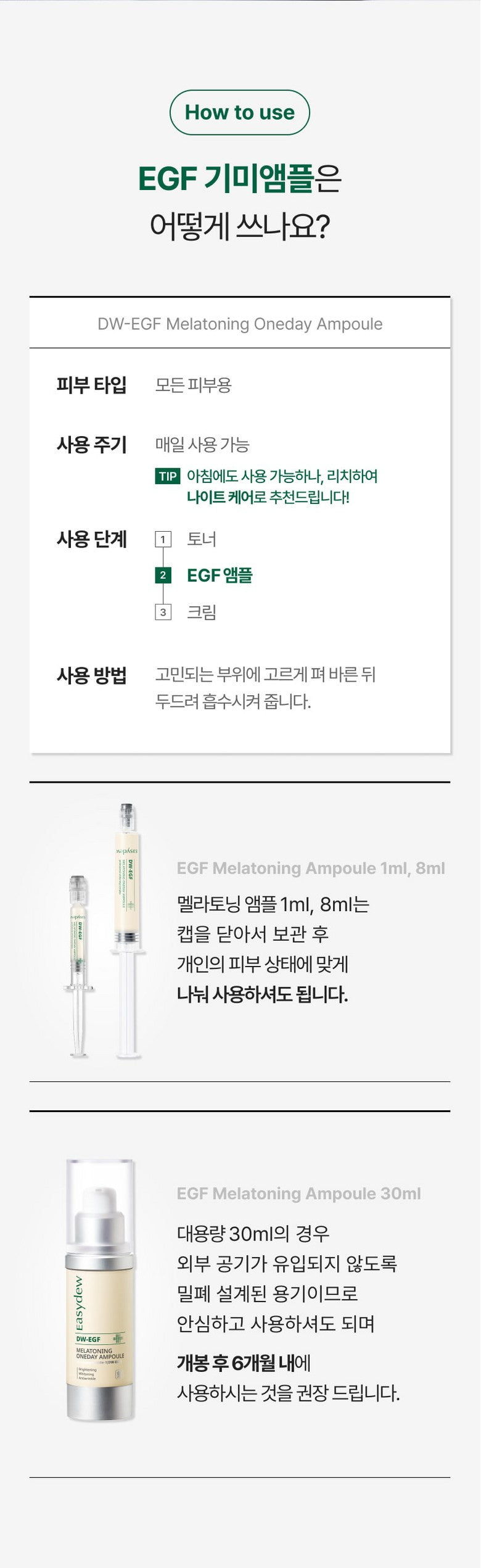 The Easydew EGF Ampoule is packaged in an airtight container to prevent contamination and maintain its high purity. For best results, use within six months of opening.