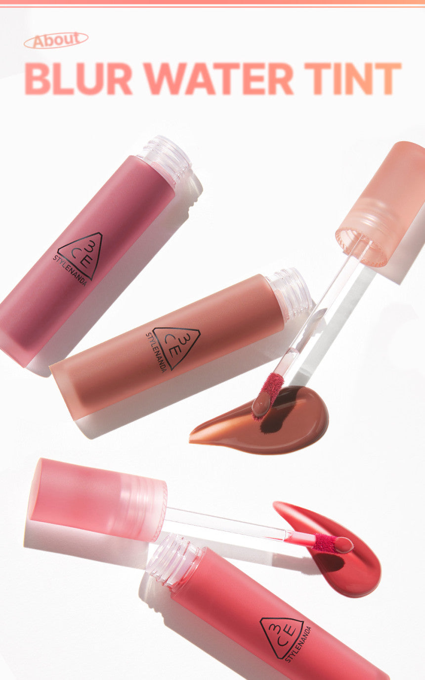 Experimentei o 3CE Blur Water Tint e estou encantada. A textura leve se funde perfeitamente com os lábios, deixando um brilho sutil que dura bastante tempo sem grudar. É uma sensação de frescor ao longo do dia.