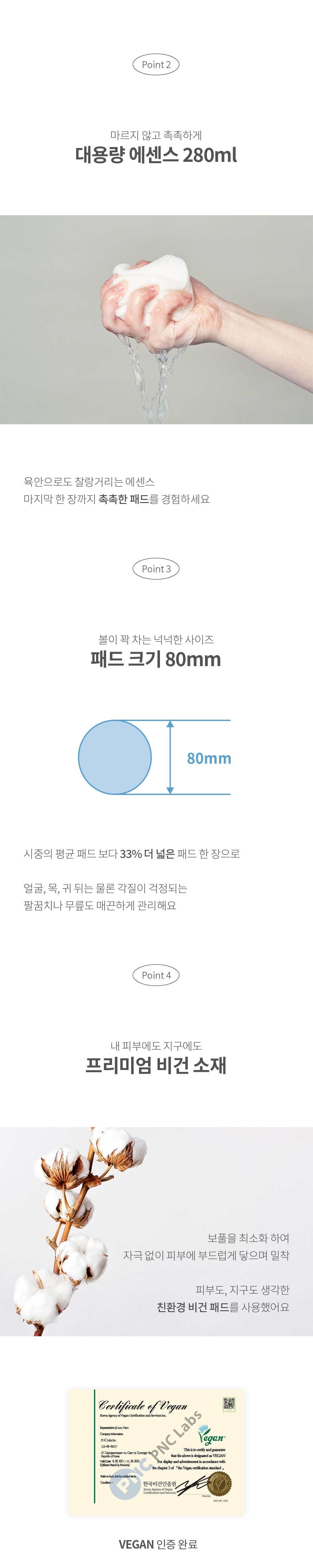 - Place the flat side of the pad on dry areas for 1 to 5 minutes. Remove and gently pat the leftover essence into the skin.