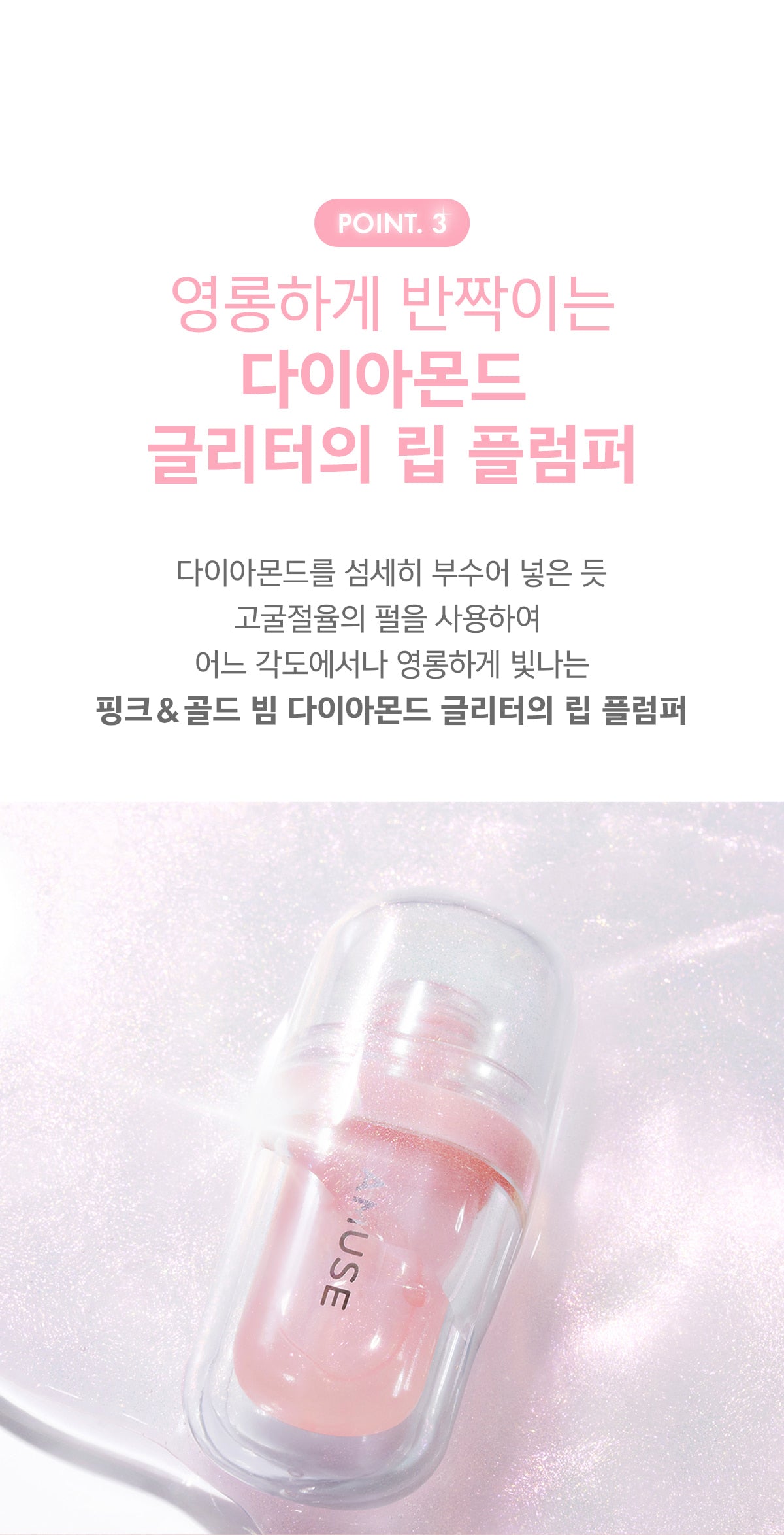 Dengan kelembutan yang menyegarkan, AMUSE Diamond Glitter Lip Plumper ini menghadirkan volum cantik tanpa rasa sakit. Tak hanya melembapkan tetapi juga mempercantik! Saya merasa percaya diri setiap kali mengenakannya.