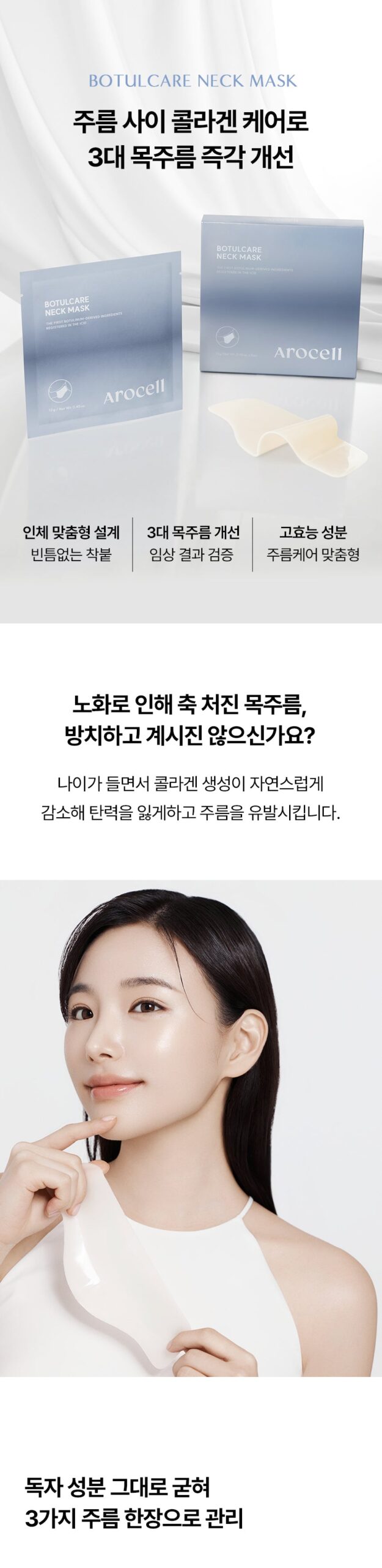 As we age, natural collagen production declines, leading to sagging skin and deepened wrinkles. The Arocell Botulcare Neck Mask provides an intensive solution to address: