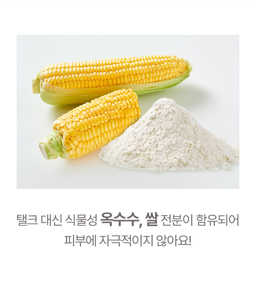 No talc—made with corn and rice starch for breathable, fluffy comfort