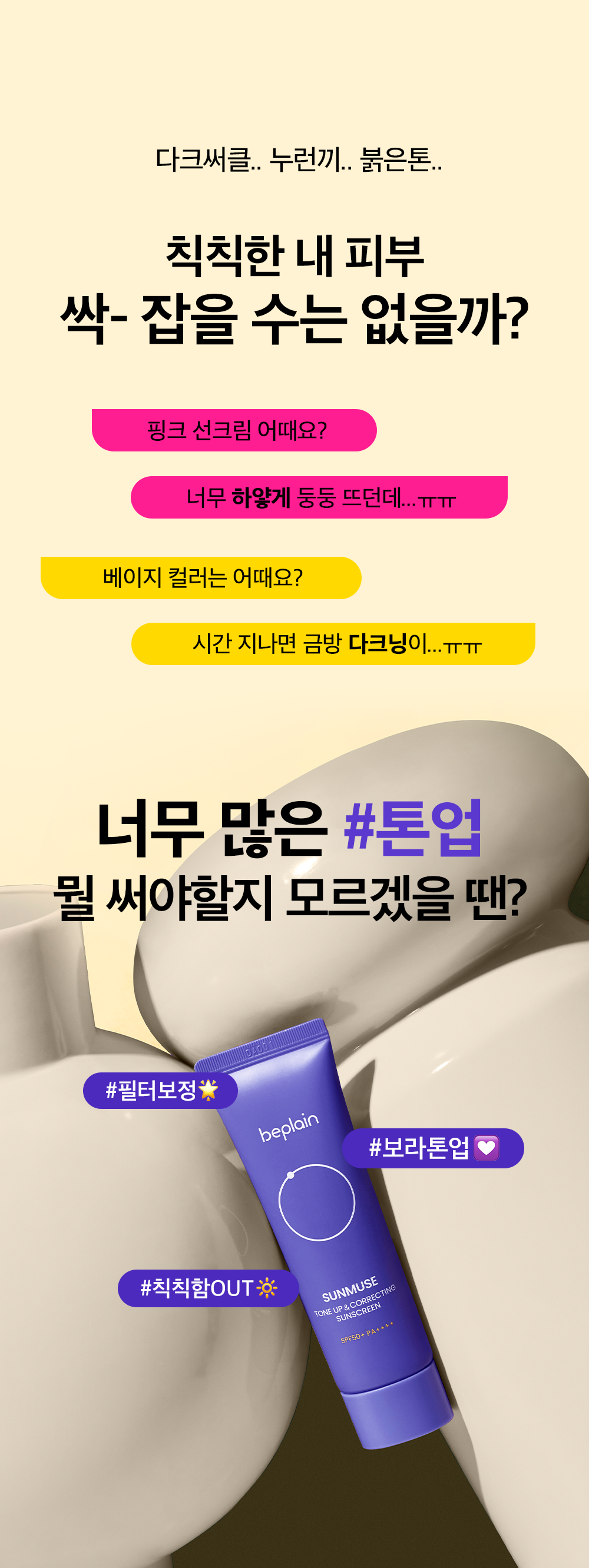 A proteção solar tem ganhado novas cores e significados, não é mesmo? Ao experimentar o beplain Sunmuse Tone Up & Correcting Sun Cream em Paris, fiquei surpreso com como a nuance roxa trouxe um frescor diferente ao meu rosto. Em dias ensolarados aqui na cidade da luz, normalmente optamos por algo que una função e estética; então eu me pergunto: como uma cor tão ousada pode trazer tanto equilíbrio à tonalidade? Percebi que seu poder de neutralizar aqueles subtons amarelados funcionou muito bem para mim! É suave sobre a pele e deixa aquele brilho saudável sem parecer exagerado — perfeito para longas caminhadas pelas ruas parisienses durante os verões quentes!