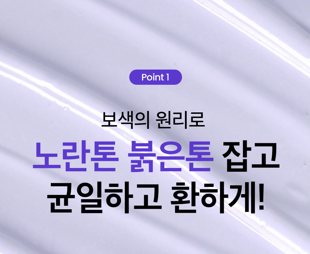 The purple formula, which is the complementary color of yellow, corrects mottled skin tone and makes it even and bright.