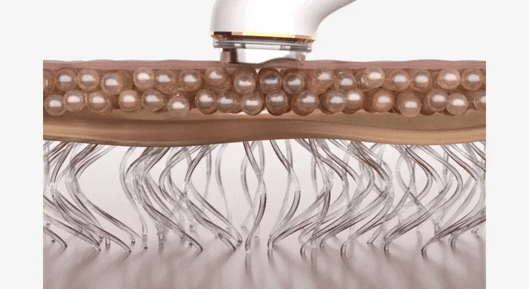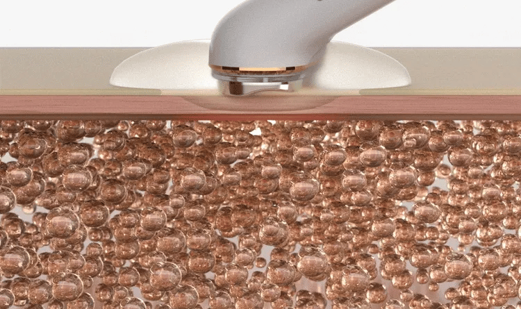Electric Muscle Stimulation works beneath the skin’s surface, targeting weakened facial muscles due to aging. This low-frequency technology strengthens elasticity and rejuvenates sagging areas by stimulating the muscle layer directly.