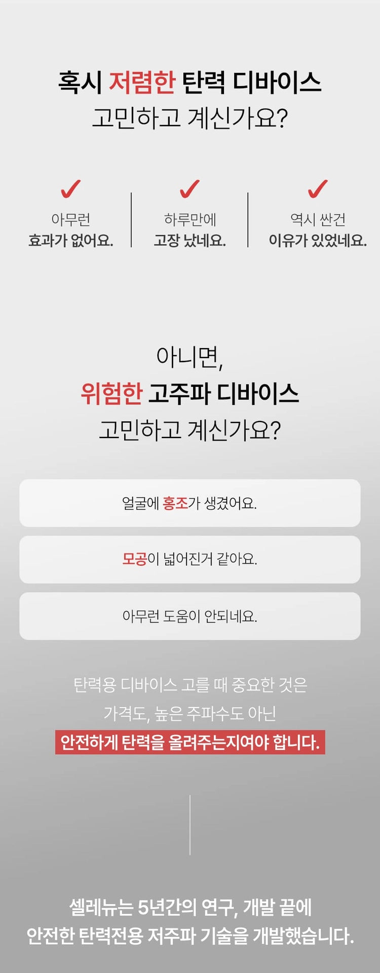 When choosing a skin-firming device, the priority should be safety and effective elasticity enhancement, not just price or high-frequency options. Cell Renew offers a solution born from five years of dedicated research and development—an innovative low-frequency technology specialized for safe and effective elasticity care.