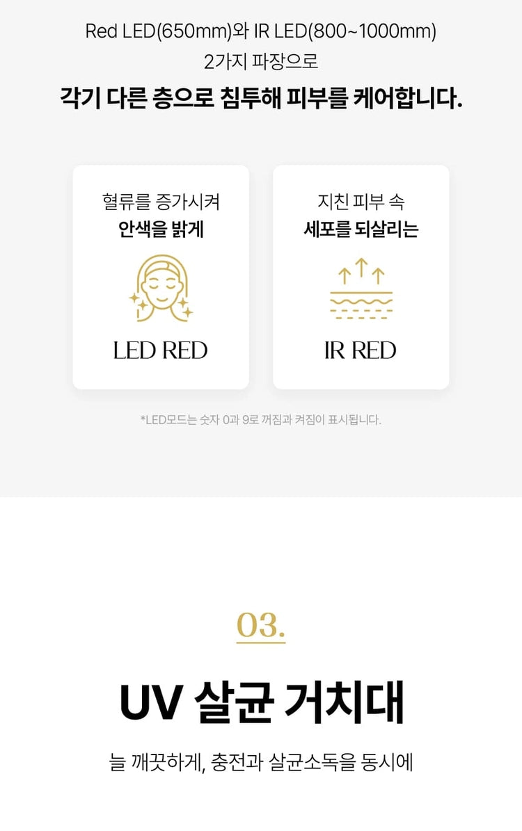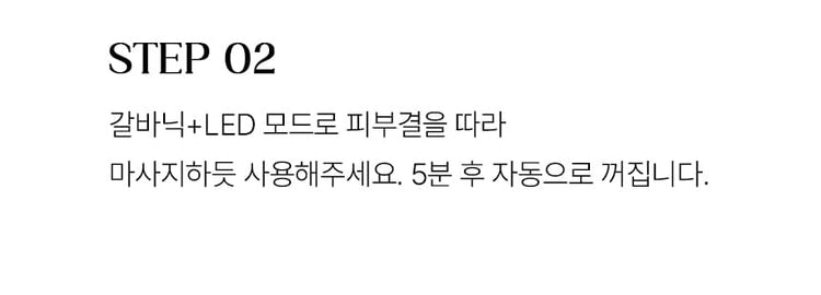 - Use the LED mode for a massage-like application along the skin’s texture. It automatically turns off after 5 minutes.