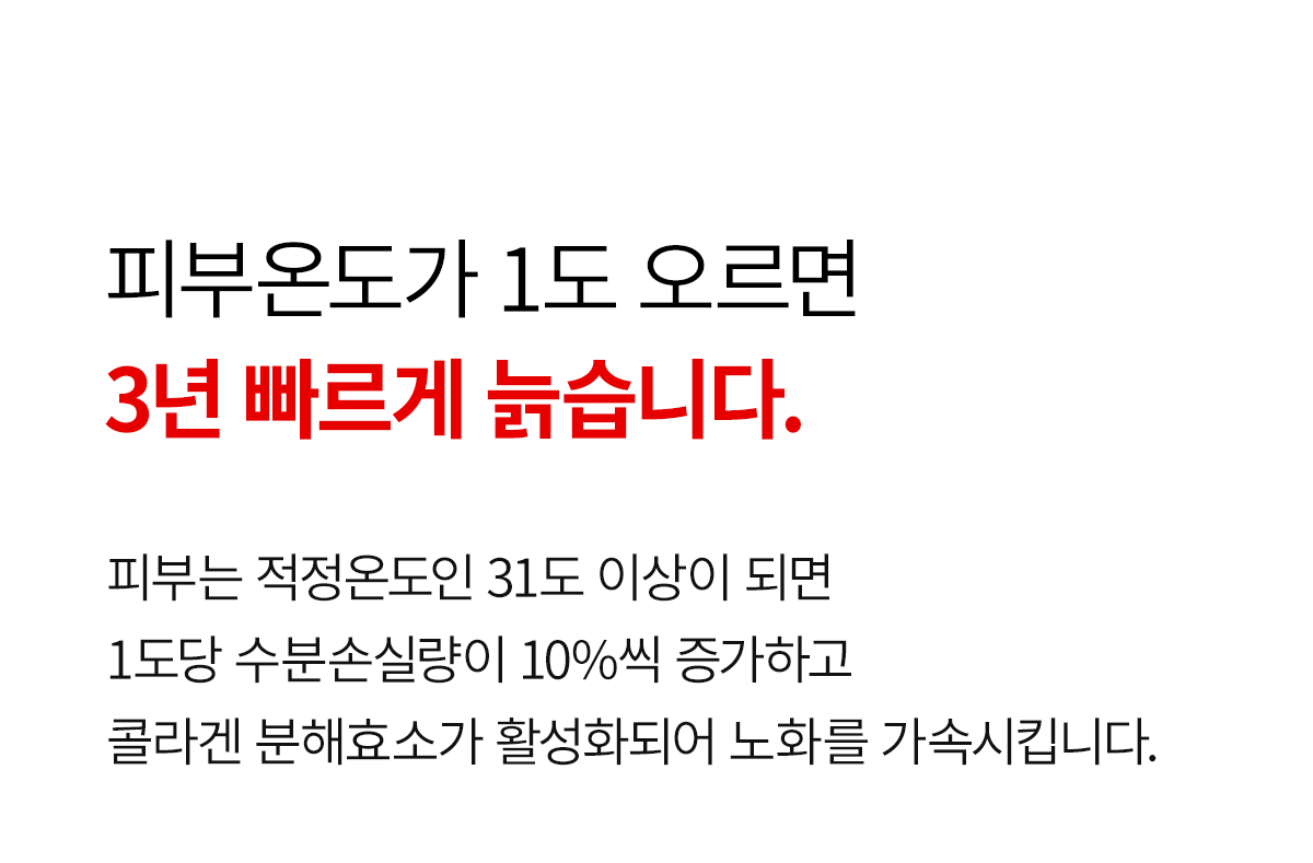 - Reduces signs of aging caused by elevated skin temperatures, such as increased moisture loss and collagen degradation.