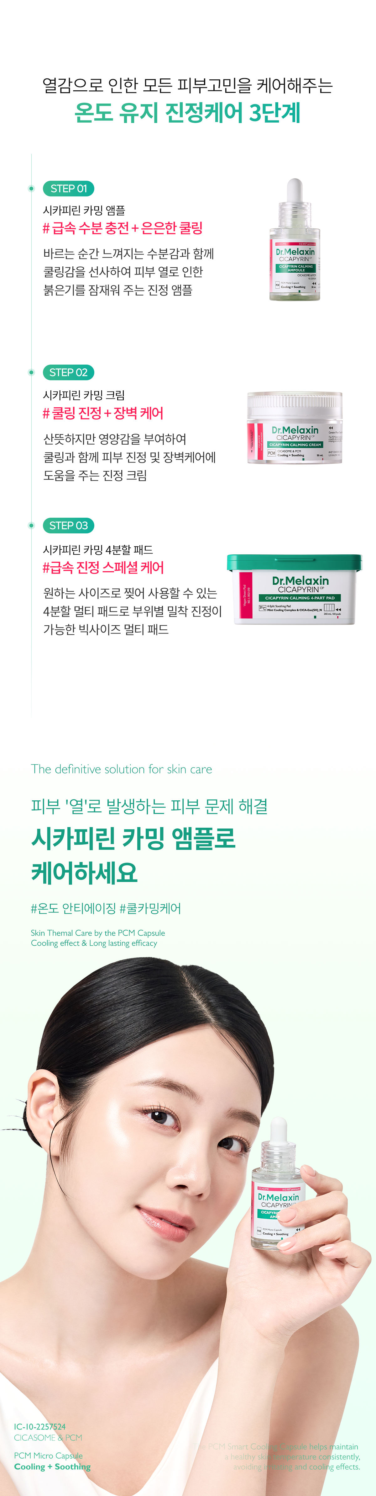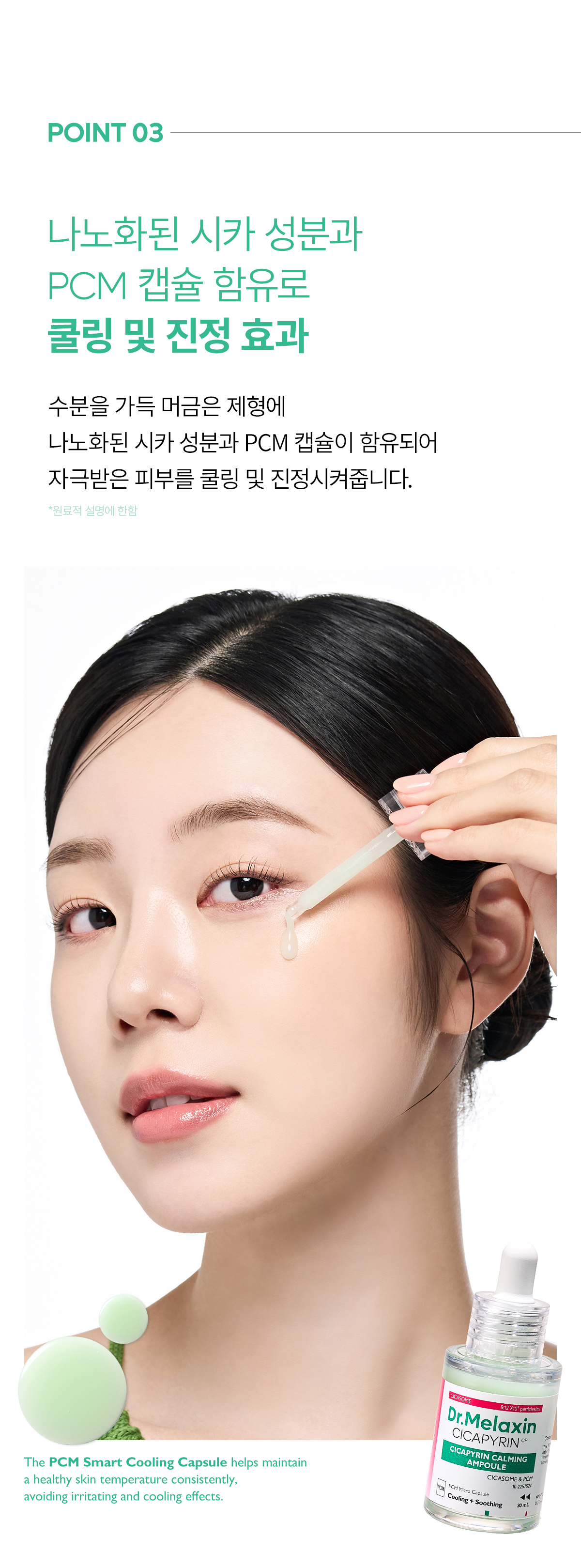 The Cicaphyrin Calming Ampoule provides a dual-action solution: lowering elevated skin temperatures while maintaining the lowered temperature to prevent recurring irritation.