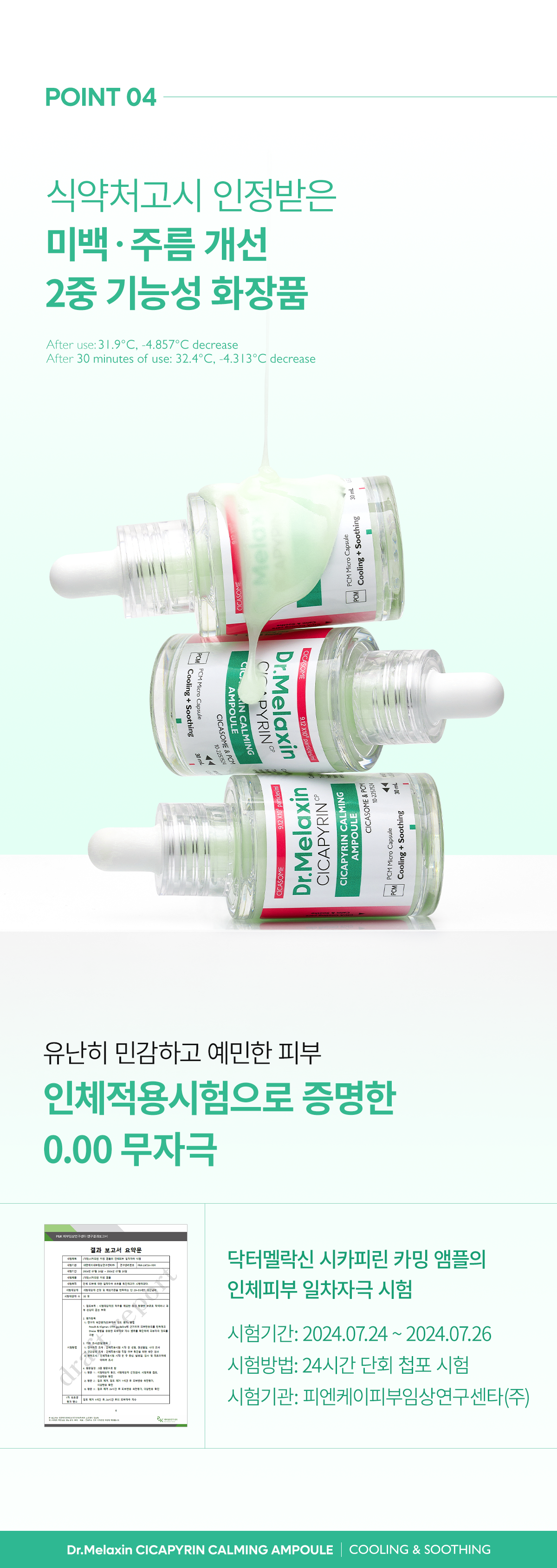 Transform your skincare routine with the Cicaphyrin Calming Ampoule—a revolutionary product designed to relieve skin fever and maintain your skin’s optimal temperature of 31ºC. This advanced ampoule addresses skin irritation at its core, offering effective cooling and soothing care with patented ingredients.