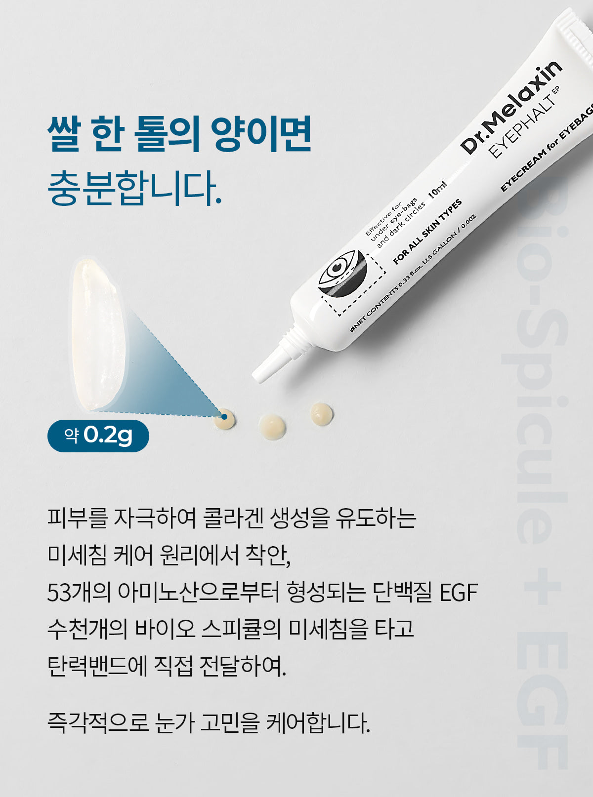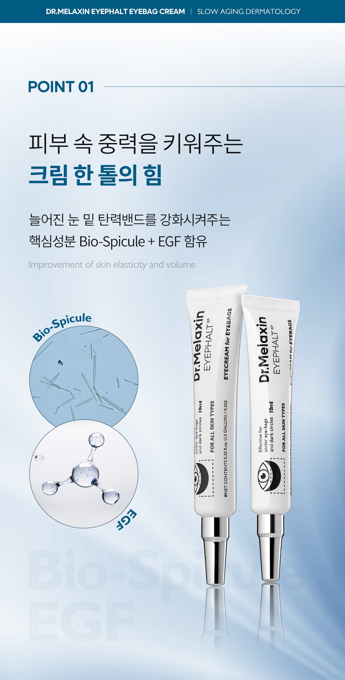 - Skin Elasticity Boost: Enriched with EGF Spicule to reinforce the under-eye elasticity band.
