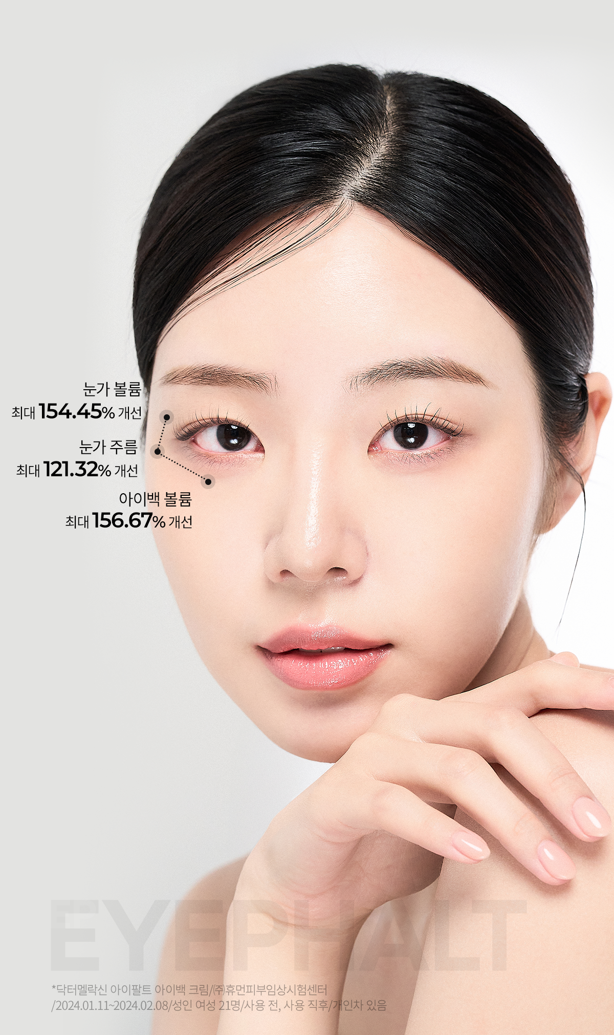 - Eye bag volume improved by up to 156.67%.