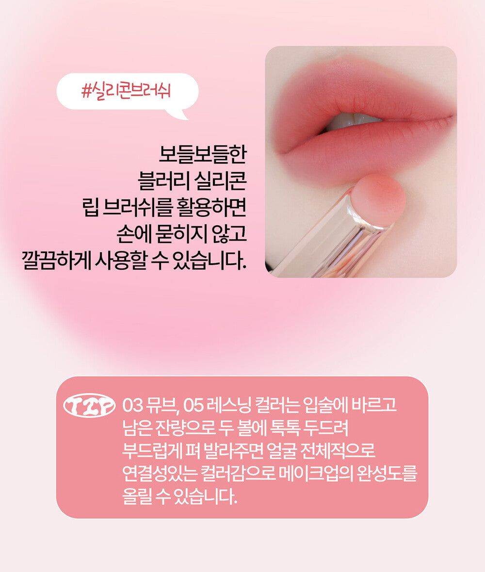 A melting blur texture that seamlessly melts into your fingertips, gently enveloping the fine lines of your lips.