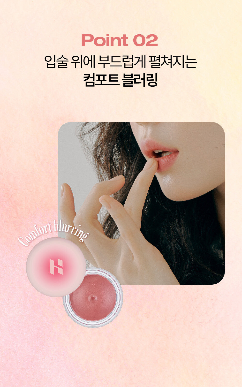A melting blur texture that seamlessly melts into your fingertips, gently enveloping the fine lines of your lips.