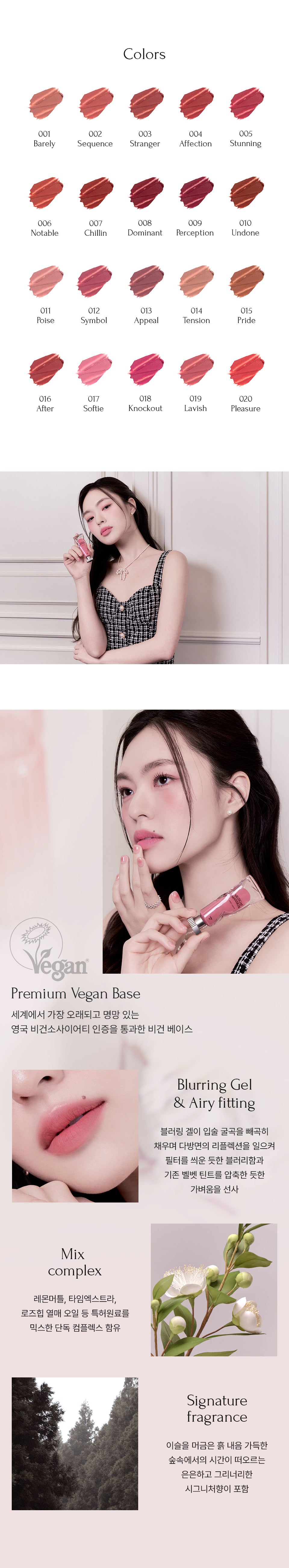 I picked up the MUZIGAE MANSION Objet Liquid out of curiosity, especially considering it’s touted as vegan. At first glance, it seems just like another beauty product line focused on visuals rather than substance. However, upon trying ‘Sequence’, I was surprised! The texture felt uniquely light and had an alluring translucence that subtly amplified my lip’s natural color without overwhelming my features — no cakey feel at all. Each shade holds its own narrative; you genuinely get a sense they’re designed with intention beyond mere aesthetics. This is not simply makeup; it’s an exploration into emotion infused within shades of creativity.