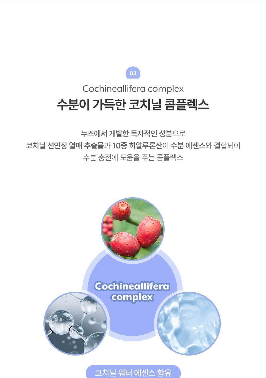 Ingredients: Cochineal cactus fruit extract combined with tenfold hyaluronic acid and moisture essence.