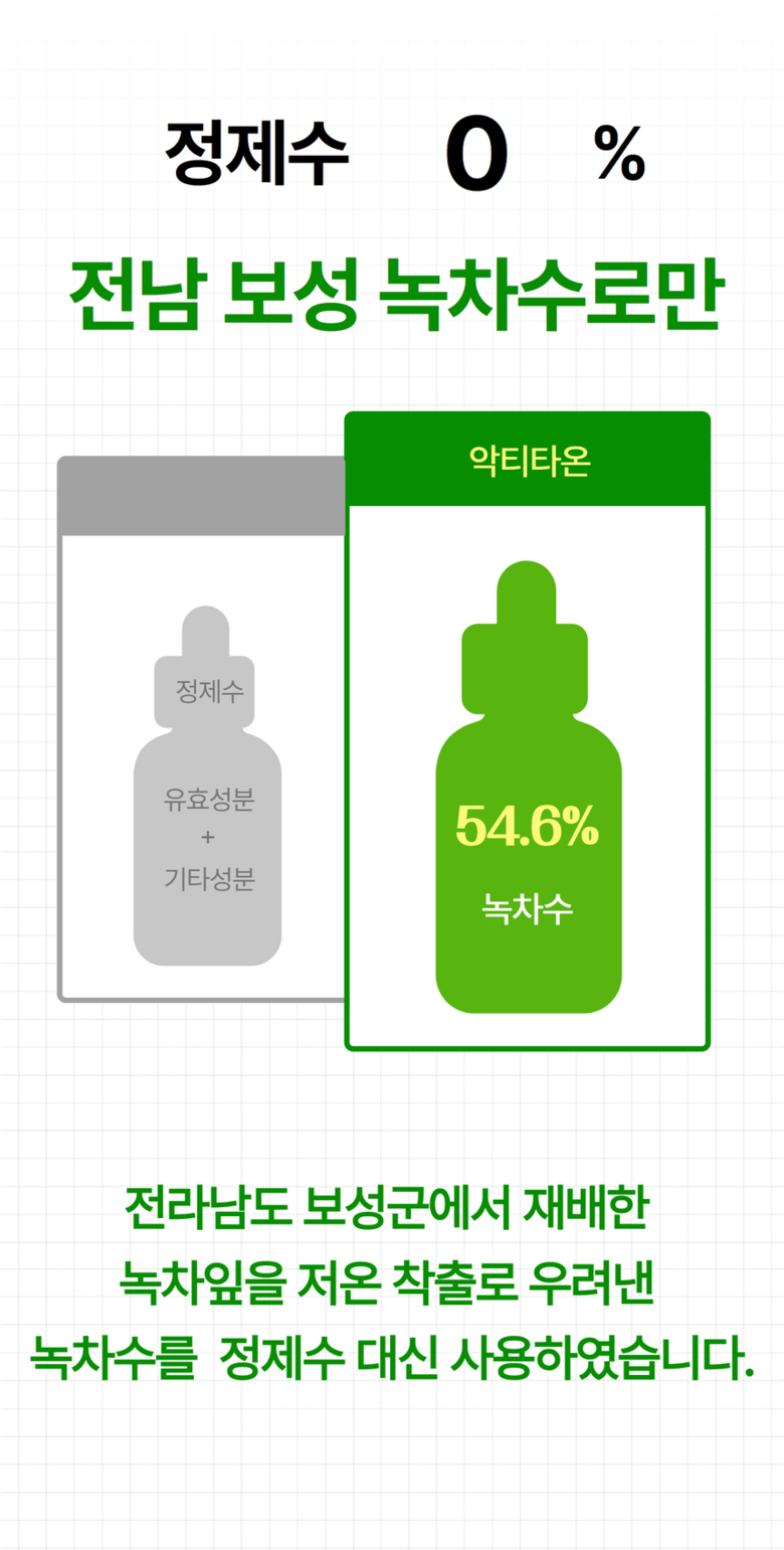 - Uses premium green tea extract from Boseong, Korea, instead of regular purified water