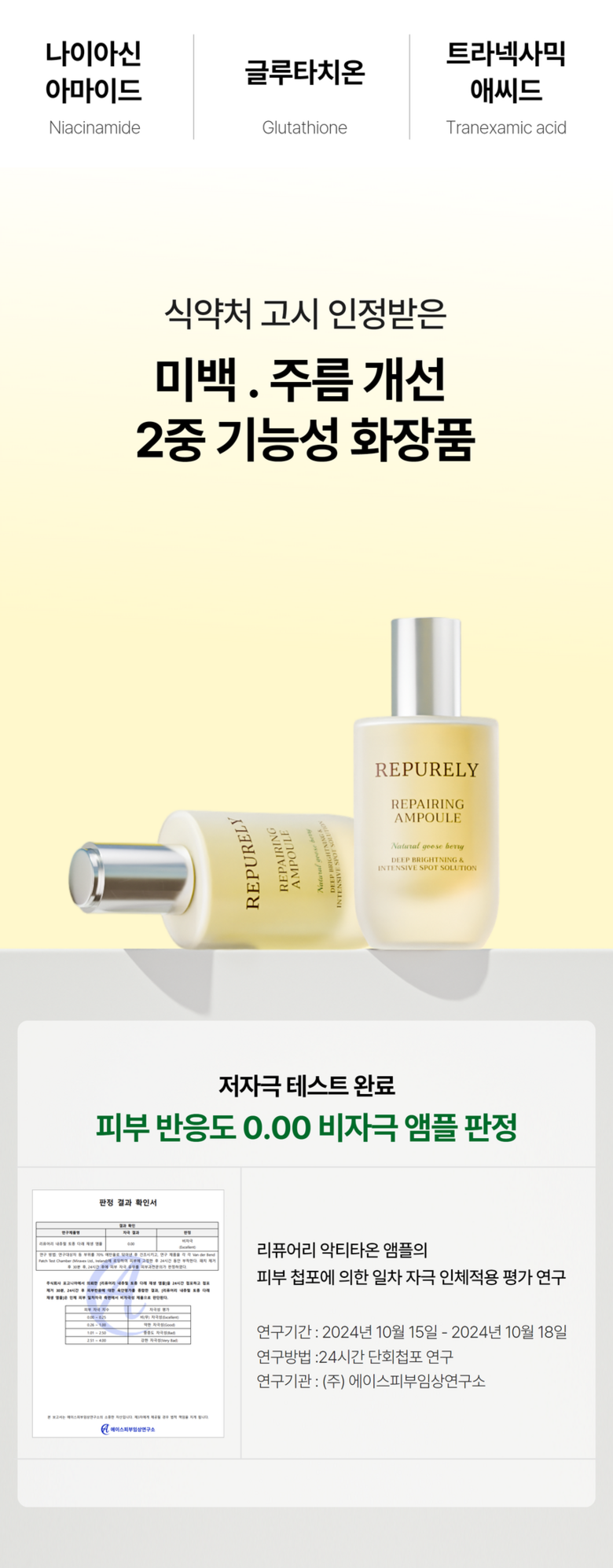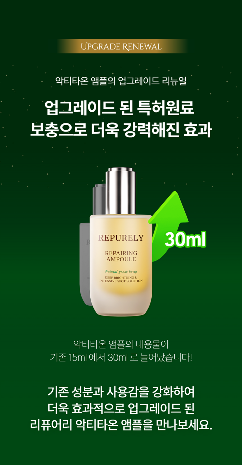The Repurely Repairing Ampoule has significantly transformed my skin in just a few weeks. The enhanced formula features patented ingredients that really make a difference, especially the Actitaon technology which boosts its effectiveness. I experienced improved hydration and visible clarity; my complexion feels brighter, and I’ve seen fewer breakouts since using it consistently. It absorbs effortlessly without any sticky residue—perfect for layering under moisturizer or makeup.