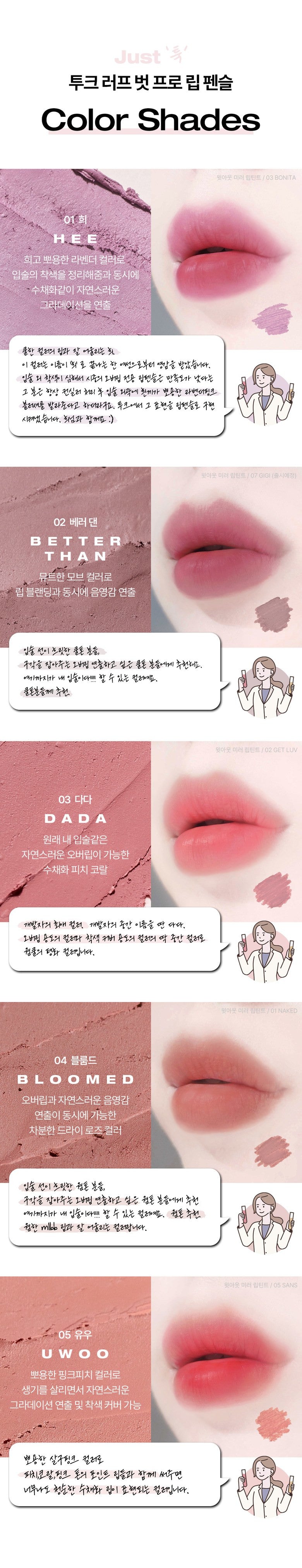 - Watercolor-Like Finish: Achieve a naturally blurred and soft lip line with this innovative lip makeup. The formula creates a gentle, watercolor-dyed effect on your lips, enhancing your natural beauty with a delicate touch.