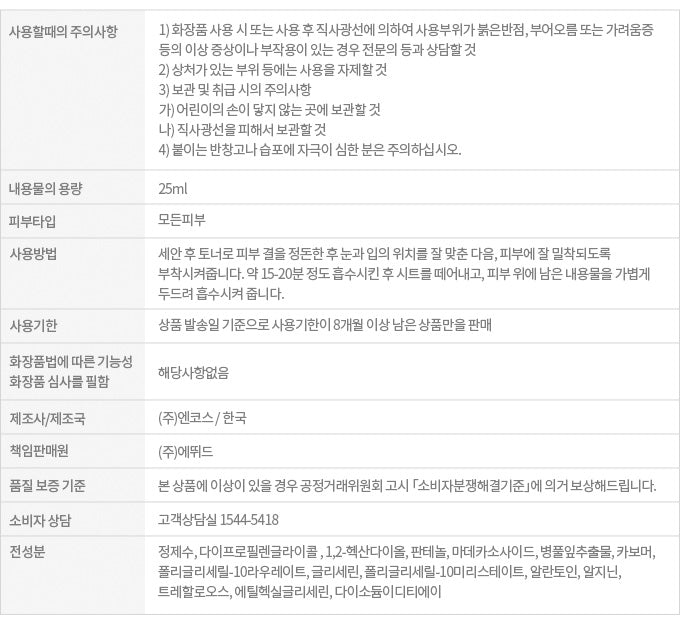 * Moisture-soothing sheet mask that gently envelops tired skin and instantly replenishes moisture, and the panthesoside ingredient soothes the skin comfortably.