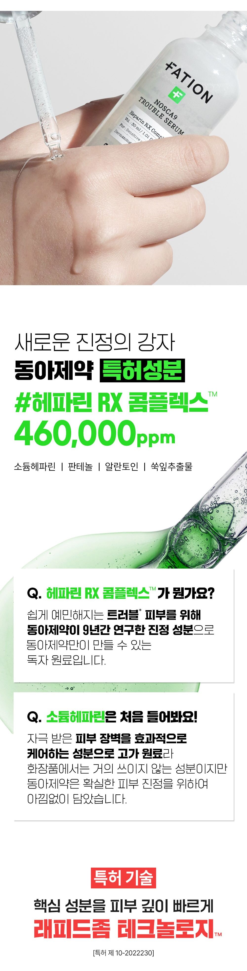 At the heart of the FATION Nosca9 Trouble Serum lies the exclusive Heparin RX Complex™. This advanced ingredient blend is meticulously crafted to target and soothe irritated skin, accelerate healing, and fortify the skin’s natural barrier. Our studies show remarkable efficacy in: