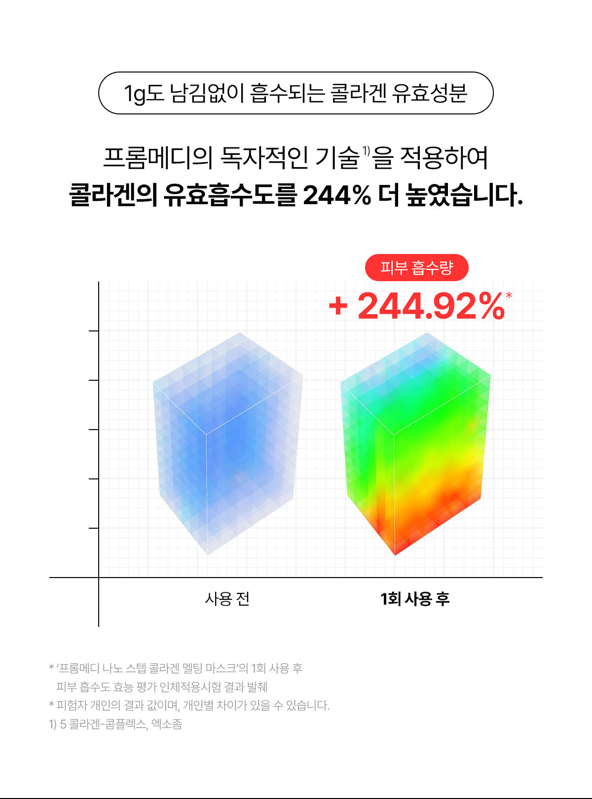 - Proprietary technology enhances collagen absorption, allowing even 1g of collagen to fully absorb into your skin.
