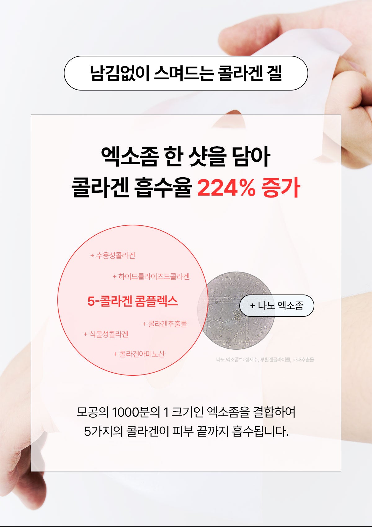 - Step 2: Nano exosomes promote absorption of active collagen ingredients.
