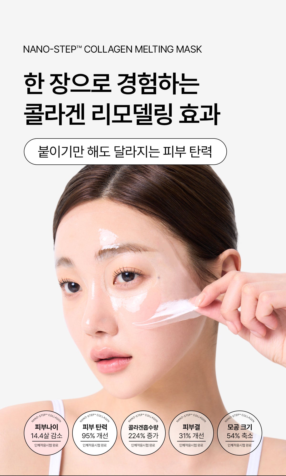 Experience a breakthrough collagen gel mask that absorbs completely and becomes transparent during use.