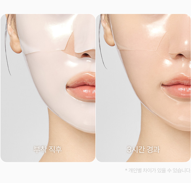 The mask melts and absorbs at skin temperature, utilizing concentrated gel technology that leaves no residue behind.