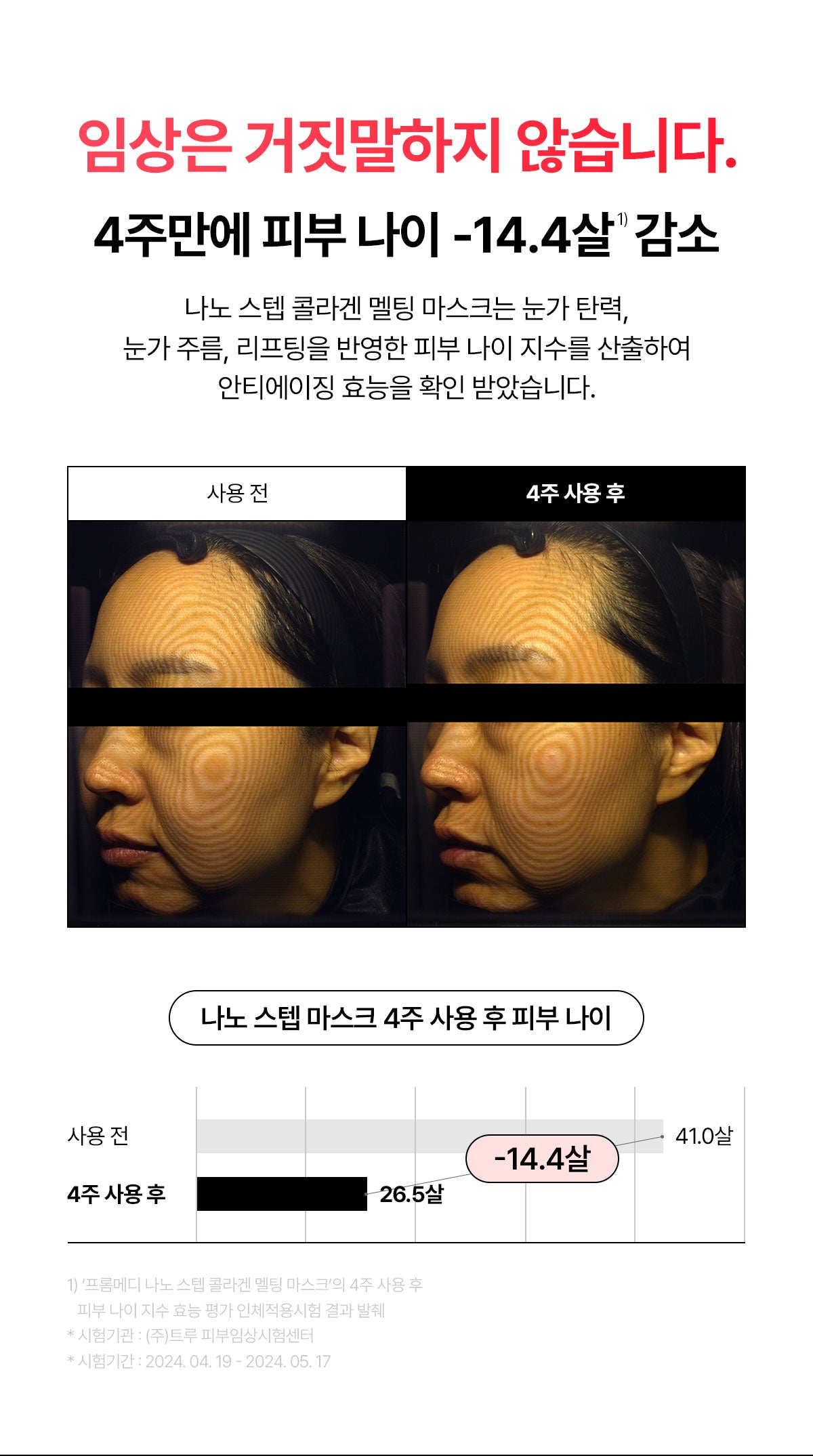 - Skin age reduced by 14.4 years