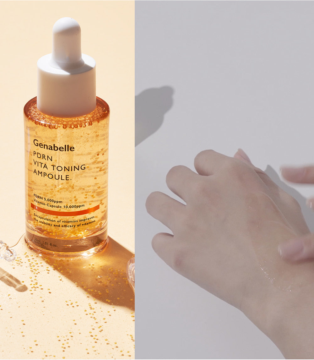 Elevate your skincare routine with the Genabelle PDRN Vita Toning Ampoule—a luxurious solution for luminous, youthful skin.