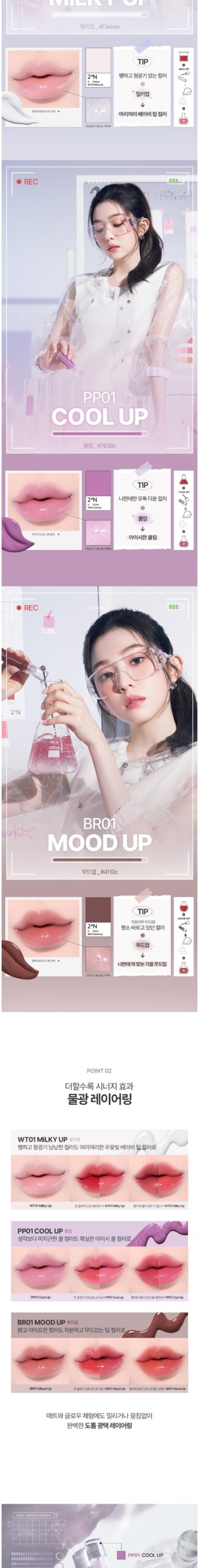 Experience a lightweight, transparent water-colored gloss enhanced with densely packed starlight powder. The clear blue base, infused with multi-dimensional glitters, creates a sparkling finish that feels light and non-sticky for all-day comfort.