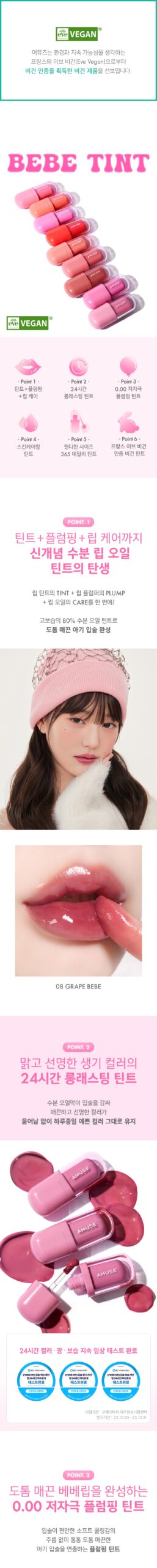 I gotta admit, I was pretty skeptical about the AMUSE Bebe Tint when I first picked it up. Another lip tint promising plumpness and hydration? Pfft, seen it all before! But man, after giving it a whirl, I’m pleasantly surprised! It really does deliver that baby-soft feeling without leaving my lips sticky like some others I’ve tried. The color lasted for ages—like seriously over twelve hours of wear while still looking fresh. And trust me; those claims of deep hydration? They’re real! My lips felt so nourished all day long with that intense moisture oil mix in there. This could become a staple in my routine!