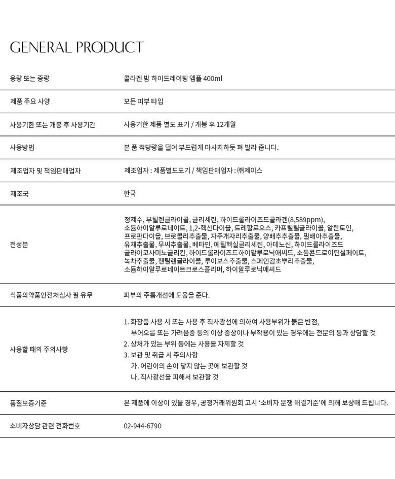 Collagen plays a crucial role in maintaining the skin’s structure, making up about 90% of the dermal layer. This ampoule contains hydrolyzed collagen for easy absorption, preventing moisture loss and improving skin density, resulting in firmer and healthier-looking skin.