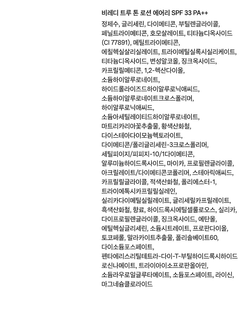 I bought the B.READY True Tone Lotion about two weeks ago, and I gotta say, I’m really impressed! It feels super light on my skin, which is a must for my oily complexion. I use it daily before heading out, and the SPF 33 is a big plus! My skin looks fresh and hydrated without feeling greasy at all. The only thing I wish is that it came in more shades to cater to different skin tones. Overall, definitely a great find for anyone looking for a good moisturizer with sun protection!