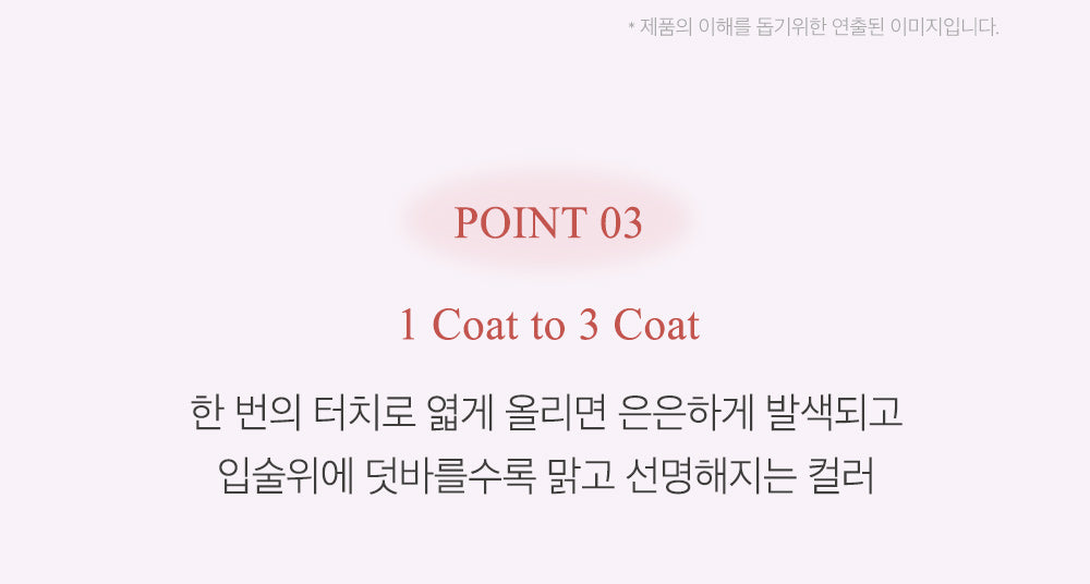 The color appears subtly when applied with a single touch, and becomes clearer and clearer as you apply it on the lips.