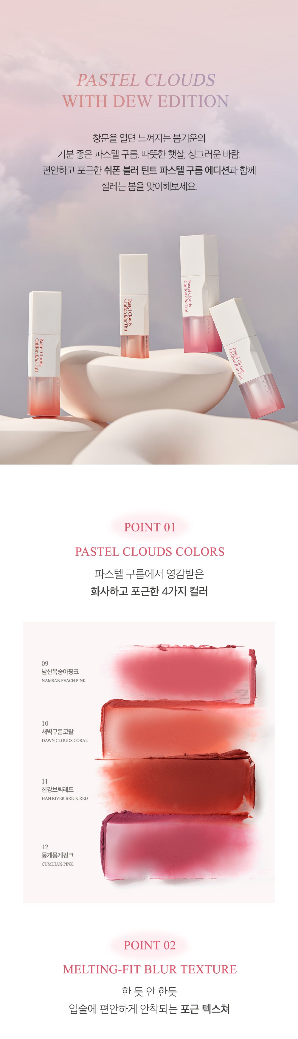 Feel the pastel clouds that you feel when you open the window, the warm sunlight, the refreshing breeze with the comfortable and cozy chiffon blusher tint pastel cloud edition.