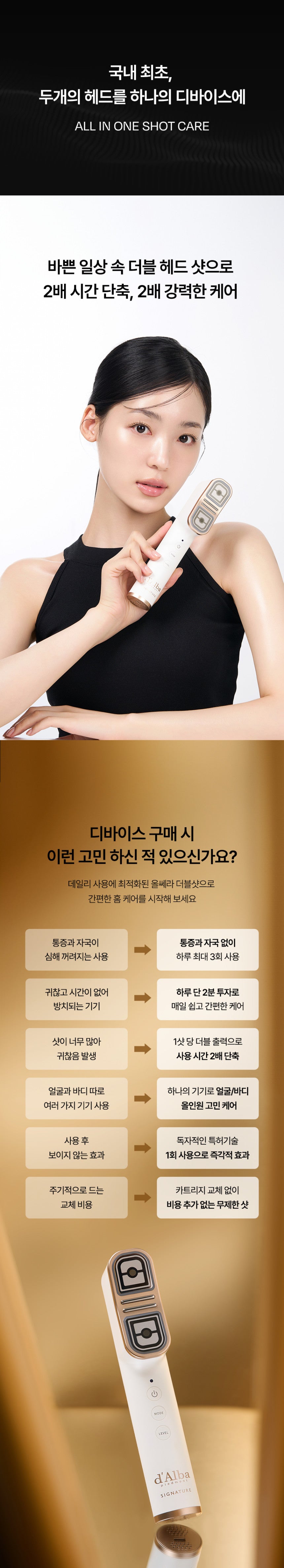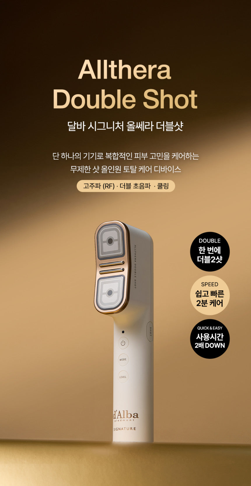Transform your skincare routine with d’Alba’s Signature Allthera Double Shot, an all-in-one device designed to address multiple skin concerns in a single, efficient session. Combining high-frequency, dual-ultrasound, and cooling technologies, this advanced tool delivers powerful and targeted care to both face and body, reducing treatment time while maximizing results.